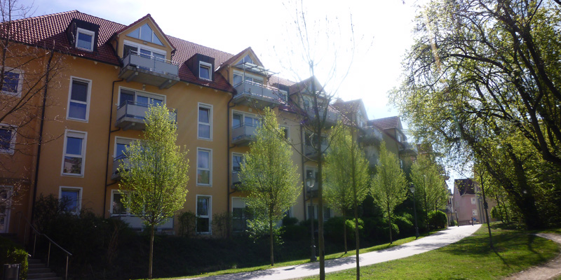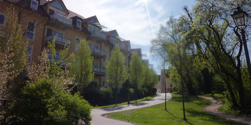 Der Wohnpark liegt am Rande der Fußgängerzone – Nähe Herrieder Tor und direkt am Stadtgarten.